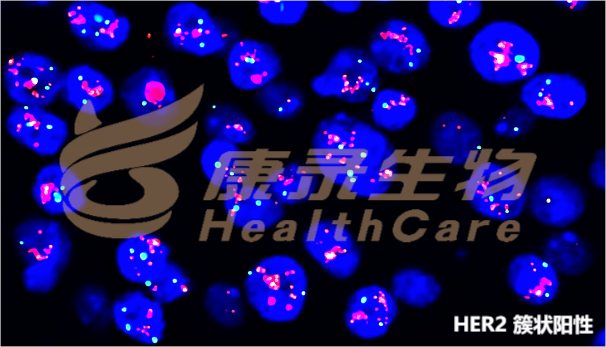 《子宫内膜癌分子检测中国专家共识(2021版)》指出,Ⅲ~Ⅳ期或复发的浆液性子宫内膜癌患者,推荐采用免疫组织化学法或荧光原位杂交实验检测HER2蛋白水平或基因扩增状态,评估抗HER2靶向治疗的机会(2A类)。Ⅲ~Ⅳ期或复发浆液性癌可考虑进行HER2过表达检测,免疫组织化学法结果有争议时,推荐采用FISH检测进行确认。