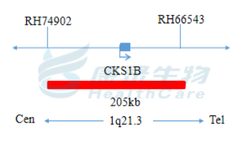 1q21基因位点标记为橘红色,长度为205kb。