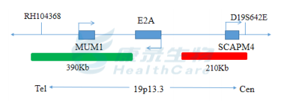 E2A基因5’端标记为橘红色; E2A基因3’端标记为绿色。