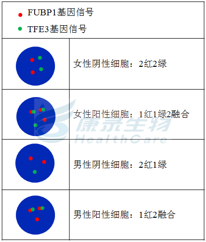 FUBP1橘红色探针;TFE3全长绿色探针。