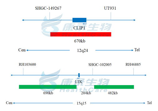 CLIP1橘红色探针;LTK绿色探针。