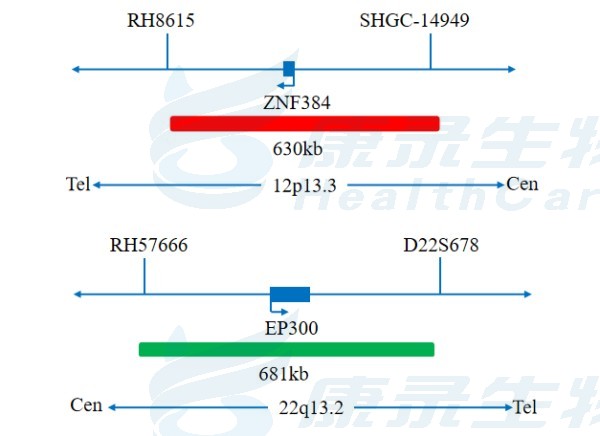 ZNF384 全长橘红色探针;EP300 全长绿色探针