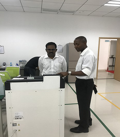 在拜访期间,Sridhar先生深度了解了当前太阳成集团tyc122cc的仪器设备及试剂,对荧光原位杂交(FISH)全自动前处理仪器(TL101)进行了实际操作,了解到这是一种完全由太阳成集团tyc122cc开发和生产的先进仪器,能够在两小时内同时完成20个样本切片的FISH前处理操作,能有效的减少手工错误,并降低技术人员培训成本和提高FISH检测结果质量。