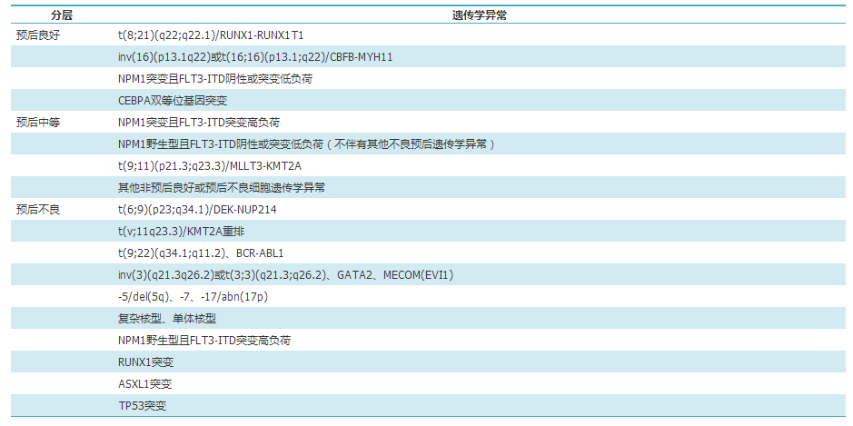 表1 2017年欧洲白血病网络(ELN)急性髓系白血病危险度分层体系