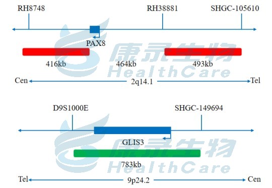 PAX8全长橘红色探针;GLIS3全长绿色探针