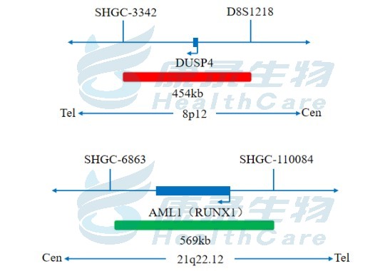 DUSP4 全长橘红色探针;RUNX1 全长绿色探针